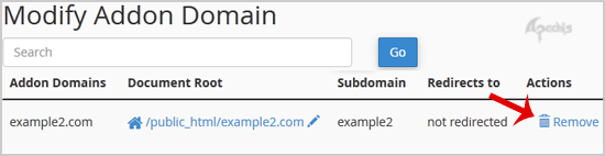 3. Locate the addon domain under Modify Addon Domain and then click on the Remove link.