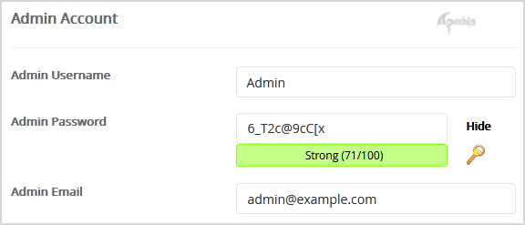 • Admin Email: Your e-mail address. (Useful for administrator account password reset, notification, etc.)