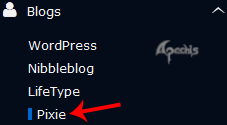 5. On the left side of your screen, you should locate the Blogs category. Click on it and then click on the Pixie link that will appear.