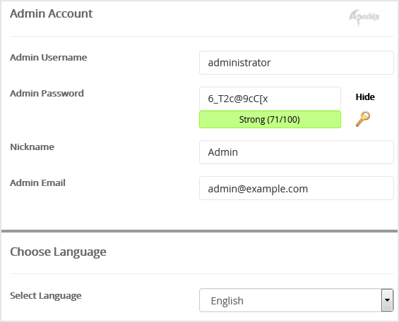 - Nickname: Nickname for the admin user account.