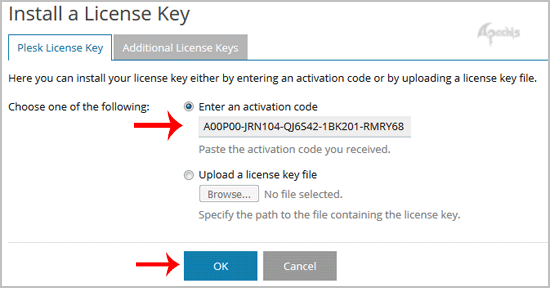 Step 4: Under Select your license type, should you have a license key, enter your Plesk Onyx license key or use a trial license by choosing Proceed with a full-featured trial license.