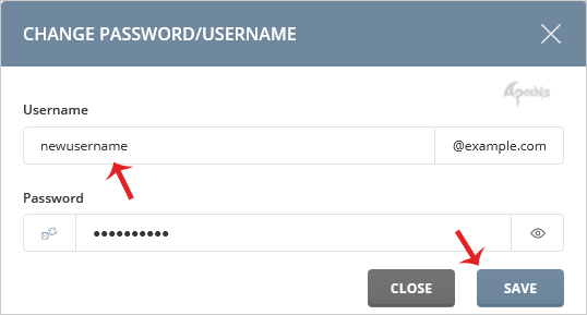 4. Click on the Plus icon and then on the Change Password/Username option.